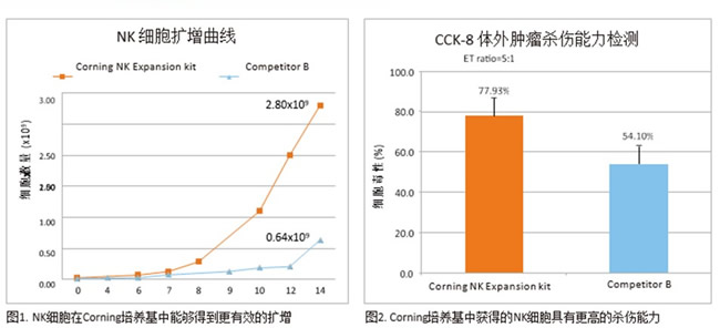 Corning NK細胞活化/擴增培養基套裝由多個組分組成,為NK細胞培養提供簡便的操作方案。使用該套裝所獲得細胞數量產量高,活性高,具有很高的殺傷效應。