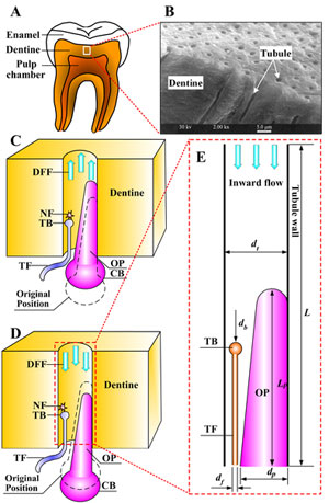 西安交通大學航天學院研究論文“Fluid Mechanics in Dentinal Microtubules Provides Mechanistic Insights into the Difference between Hot and Cold Dental Pain”在國際著名學術刊物《公共科學圖書館—綜合》(PLoS ONE)上發表。 該論文是航天學院生物醫學工程與生物力學研究中心博士生林敏,在導師盧天健教授和哈佛大學醫學院徐峰博士共同指導下,與能動學院白博峰教授合作完成,被PLoS ONE主編確認為不需要外審就可接收的論文。該項研究得到了國家杰出青年科學基金及國家外專局/教育部學科創新引智計劃項目的共同資助。 冷刺激能快速誘發短暫的牙痛感(銳痛),而熱刺激則需要延遲一段時間才能產生持久的疼痛感(鈍痛),這一現象眾所周知,但背后的隱藏的機理卻始終是個迷。學術界至今無法對冷熱刺激引起的牙疼痛機理作出令人滿意的定量或是定性解釋。該篇論文作者針對這一難題,提出了交叉學科的研究方法,利用生物微流體力學模型模擬冷熱刺激下牙本質微管內體液的定向流動對牙髓神經末梢的剪切力,并提出修正的Hodgkin-Huxley神經動力學模型,模擬在剪切力作用下,位于神經末梢傷害性感受器上機械敏感性離子通道的開放特性以及神經元放電信號,并與已有的實驗結果相吻合。該研究在國際上首次揭示了牙齒冷熱疼痛的區別機制,并給出了定量化研究,提出的模型可以預測傷害性刺激引起牙痛強度,并據此來評價、優化口腔臨床診療方法,為臨床口腔鎮痛治療提供了理論支持。
