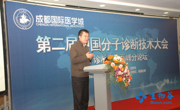 生物谷Bioon.com 重慶訊 分子診斷市場的現狀及前景如何?怎樣才能更好的發展這一產業? 2011年4月8日下午,由成都國際醫學城主辦,生物谷承辦,博奧生物特別支持的分子診斷產業高峰論壇(第二屆中國分子診斷技術大會分論壇)在重慶隆重召開,此次論壇主題是"推動轉化醫學,發展產業集群,服務人類健康。" 與會的眾多專家圍繞上述問題展開了精彩的演講和討論,贏得了來自行業內百余位參會者的陣陣掌聲。中國工程院院士程京,溫江區副區長、成都國際醫學城指揮部指揮長何敏,北京同仁醫院院長韓德民,解放軍301醫院生命科學院副院長王曉寧,新疆醫科大學附一院院長溫浩,溫州醫學院藥學院院長李校堃,生物谷集團董事長兼總裁張發寶以及中南大學臨床藥理研究所副所長張偉教授分別發表了精彩的演講。