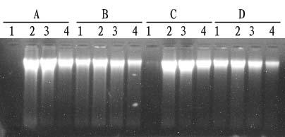 取10 ul 純化的基因組DNA 上樣于0.8%瓊脂糖凝膠,80V 電泳30