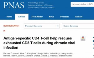 CD8+T細胞是消除感染的助力軍,但是在這樣的長期慢性感染下,LCMV病毒會導致CD4+T細胞的衰竭,而CD4+T細胞的衰竭又直接導致了CD8+T細胞的大量衰竭。