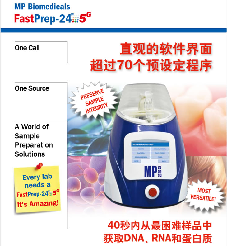 FastPrep ® -24 5G 樣品制備系統 (點擊標題進入) 北京畢特博生物技術有限責任公司 http://m.pyjb.com.cn 400熱線:400-833-9299 電話:010-82015225 傳真:010-62015131 聯系人:張鈺 手機:13366202681 QQ:1050524889 |