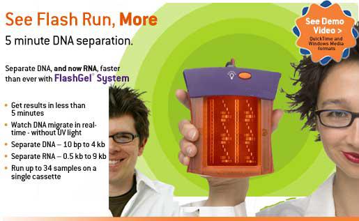 閃膠系統(tǒng)(The FlashGel System) 美國Lonza公司的FlashGel產(chǎn)品線,包括5分鐘出結(jié)果的DNA電泳預(yù)制膠(有多種型號(hào))和 配套的迷你電泳儀,F(xiàn)lashGel上樣染液和DNA/RNA標(biāo)準(zhǔn)等。這是迄今為止世界上最快速的電泳裝備。痕量快速DNA檢測(cè)電泳膠,是許多實(shí)驗(yàn)室必備的工具。 產(chǎn)品訂購信息如下: 包含 1)57025 FlashGel Dock,EA